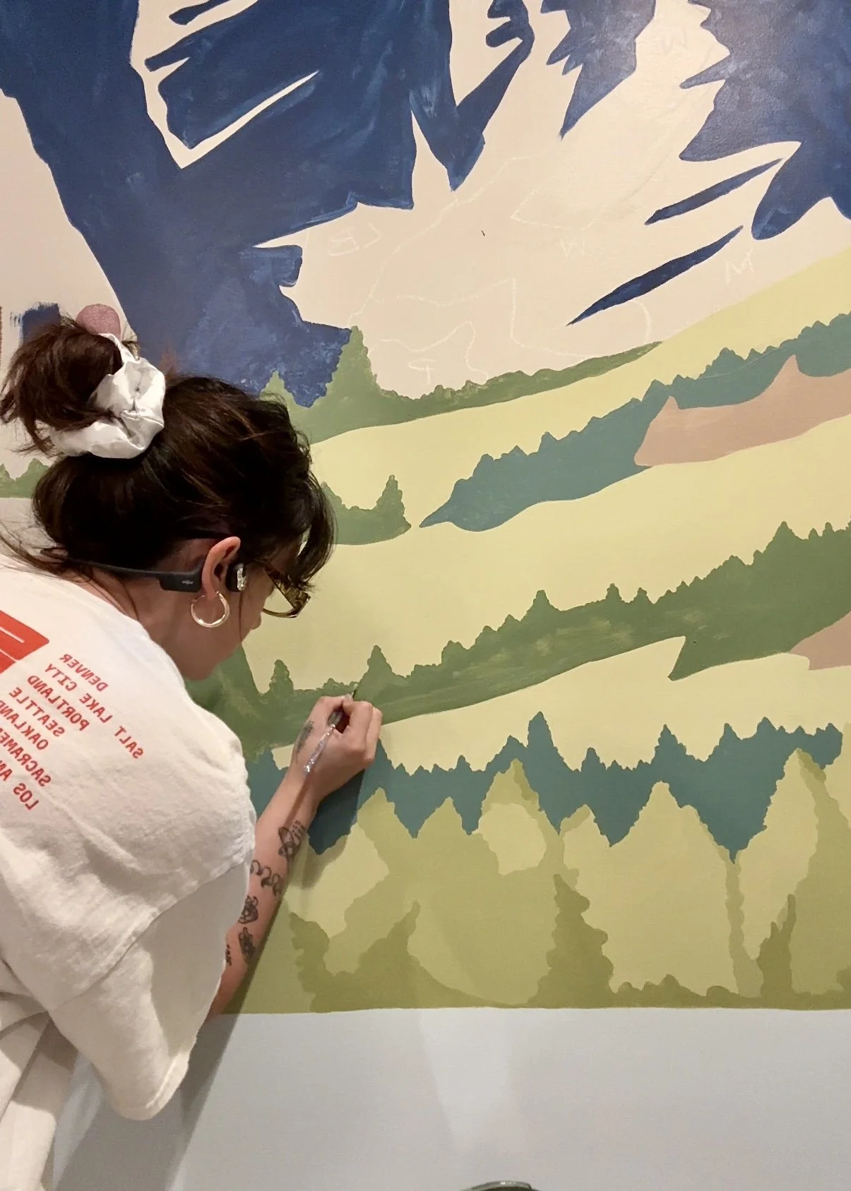 My mural style typically involves color blocking, illustrative, or abstract, bold artwork.